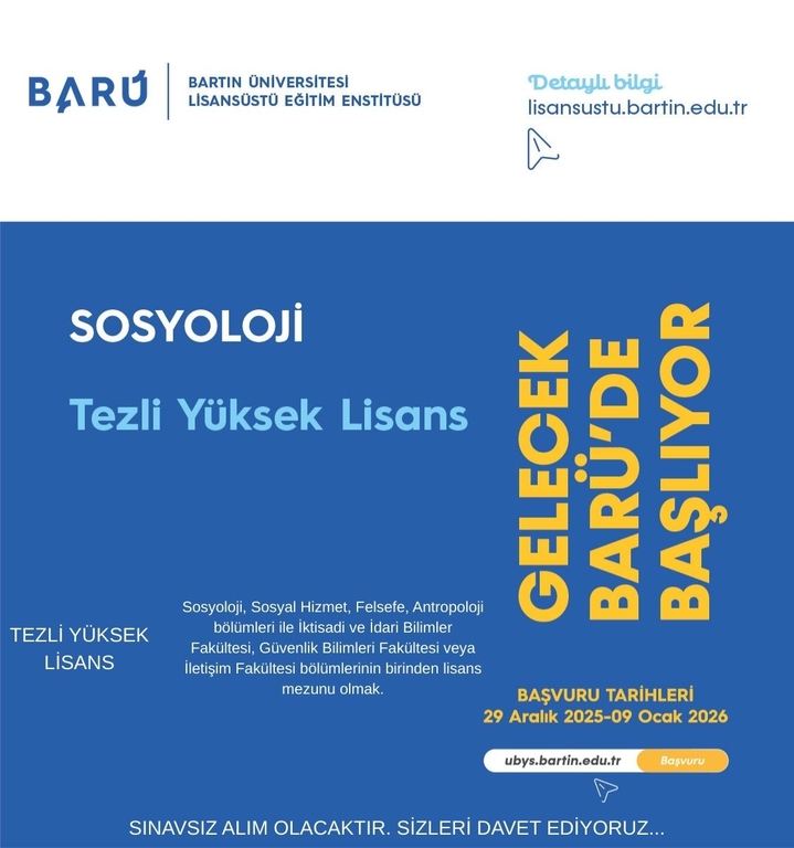 Sosyoloji Bölümü Tezli Yüksek Lisans Başvuru İlanı